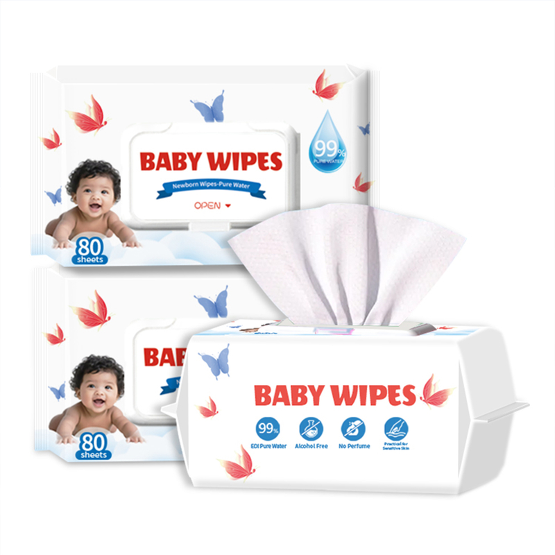 저희 아기 물티슈는 99% 순수한 물과 스펀레이스 부직포로 만들어져 환경 친화적입니다! 소량 구매가 가능한 재고가 있으며, 물티슈 제품을 맞춤 제작할 수도 있습니다.